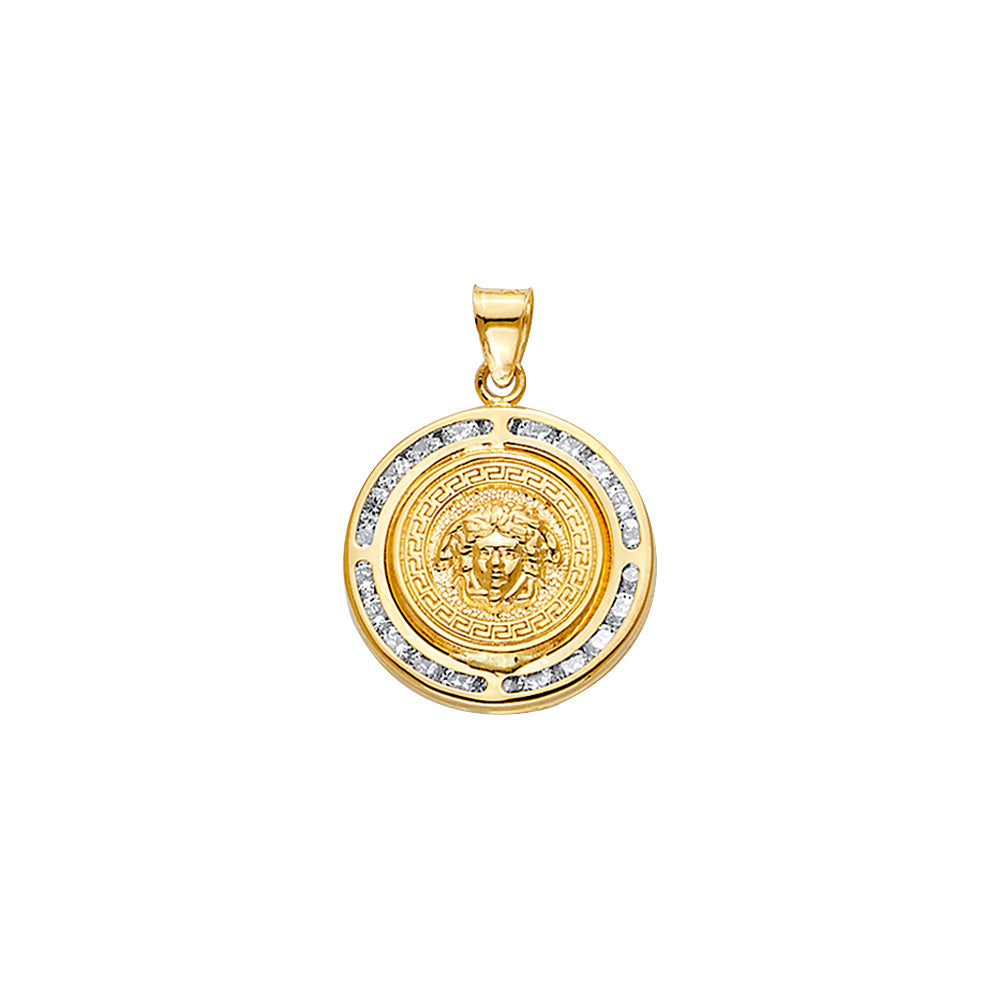 Wholesale 14K Yellow Gold CZ Round Medusa Pendant Weight-2grams, Height-25mm, Width-17mm