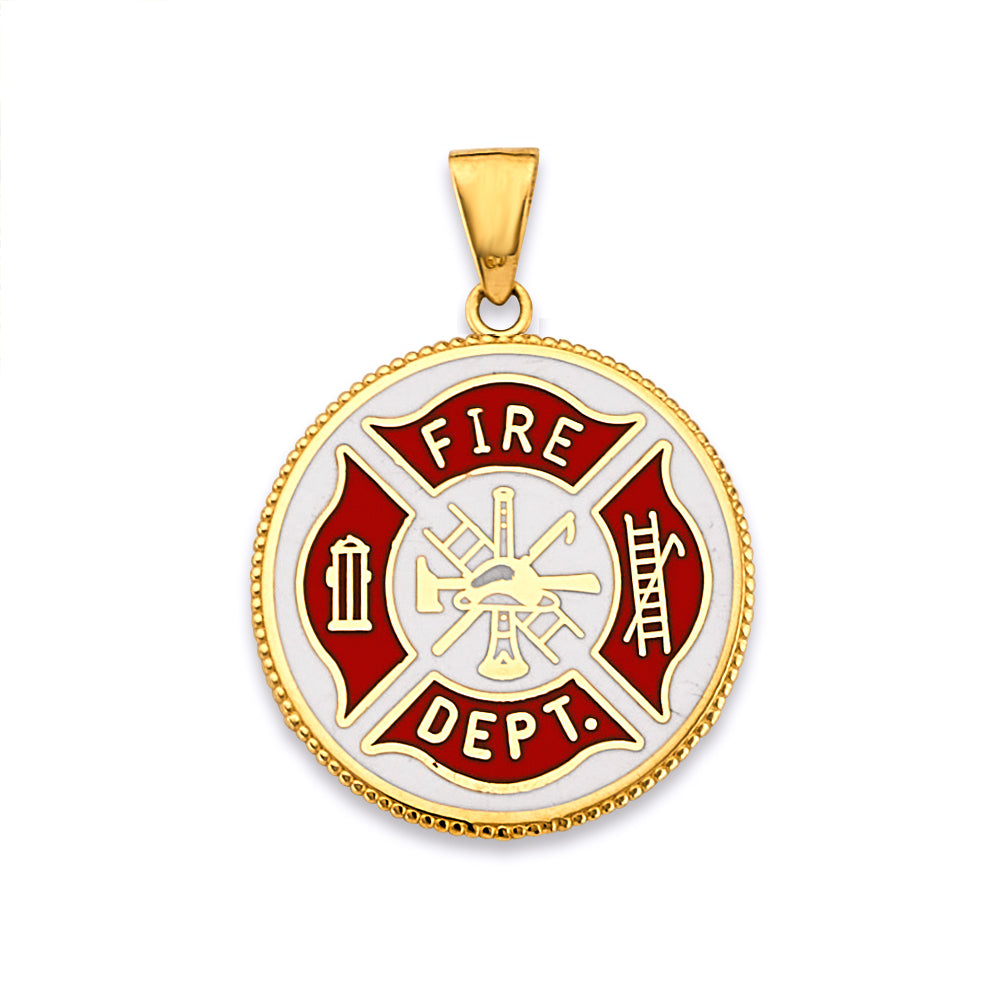14K Yellow Gold Fire Dept. Double Sided Pendant