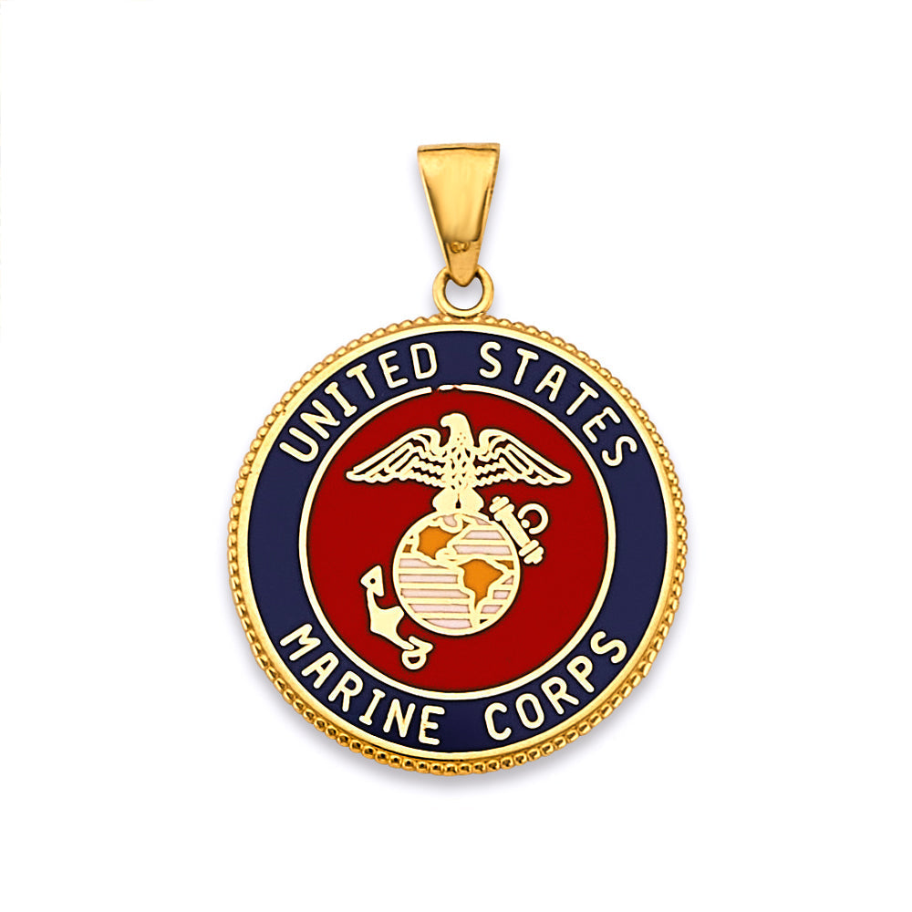 Wholesale 14K Yellow Gold US Marine Double Sided Pendant Weight-2.99grams, Height-25mm, Width-20mm