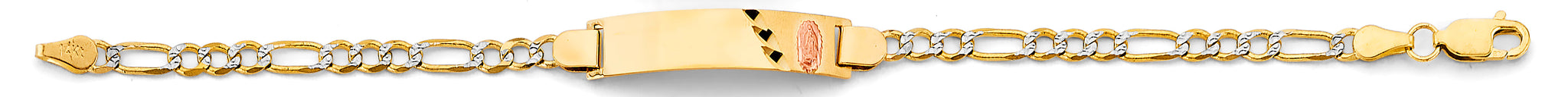 14K Two Tone Gold Figaro WP Guadalupe ID Bracelet