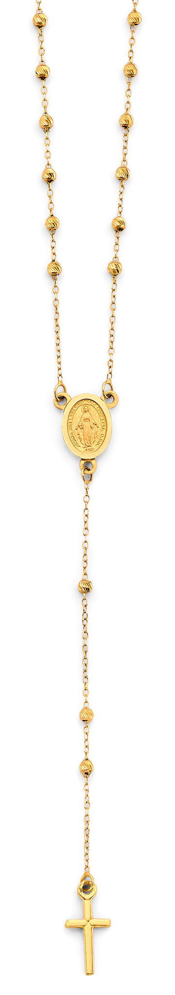 14K Yellow Gold 2mm DC Ball Rosary Necklace With Virgin Mary
