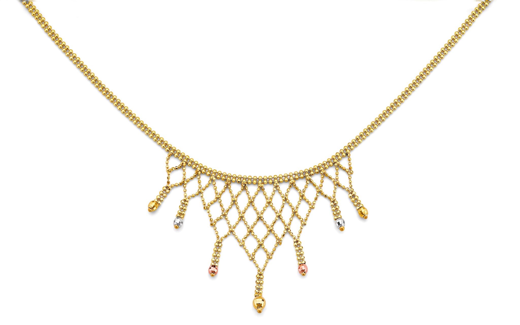 Wholesale 14K Tri Color Gold Beaded Necklace Weight-7.58grams