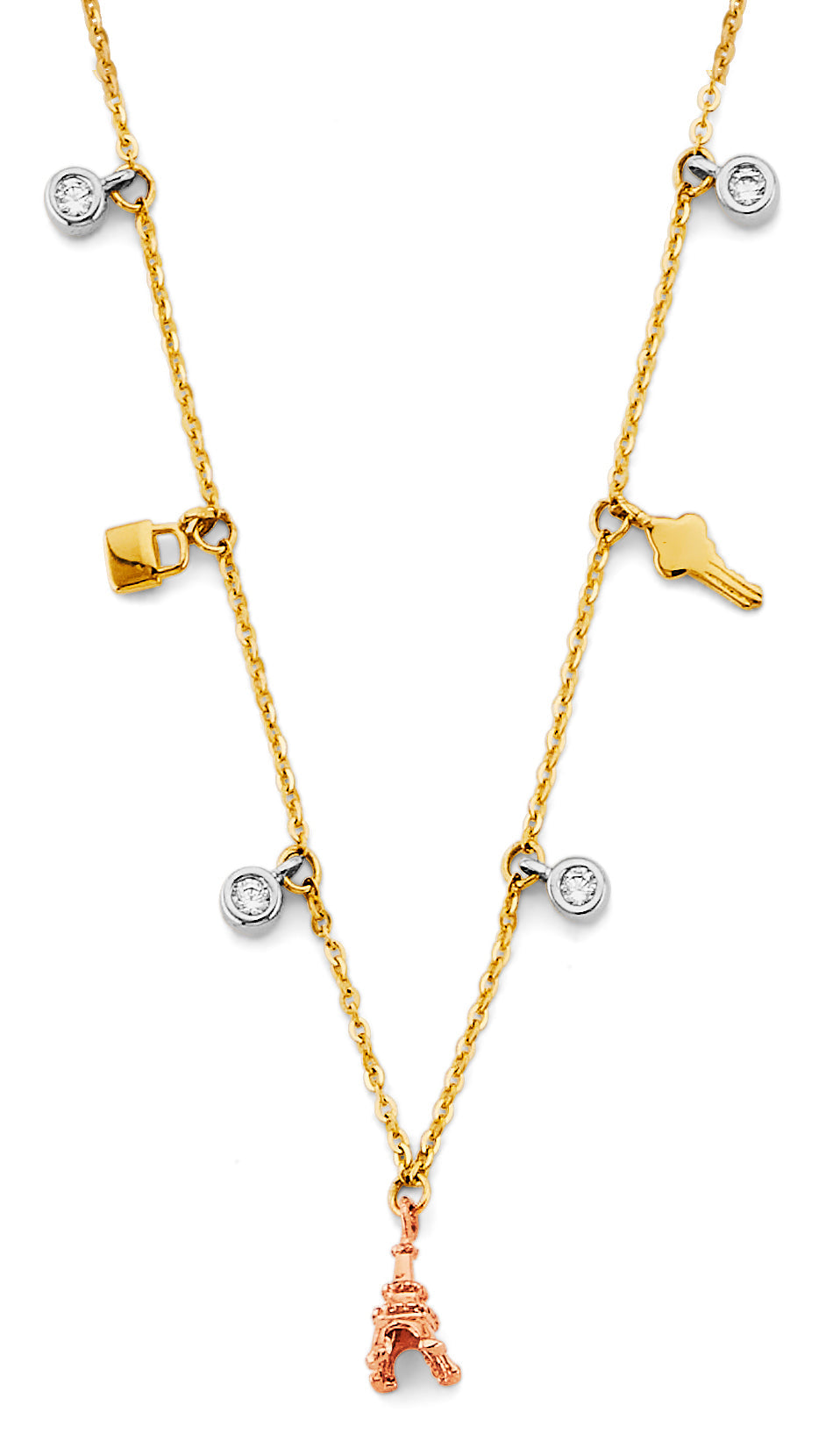 Wholesale 14K Tri Color Charm CZ Necklace Weight-1.84grams
