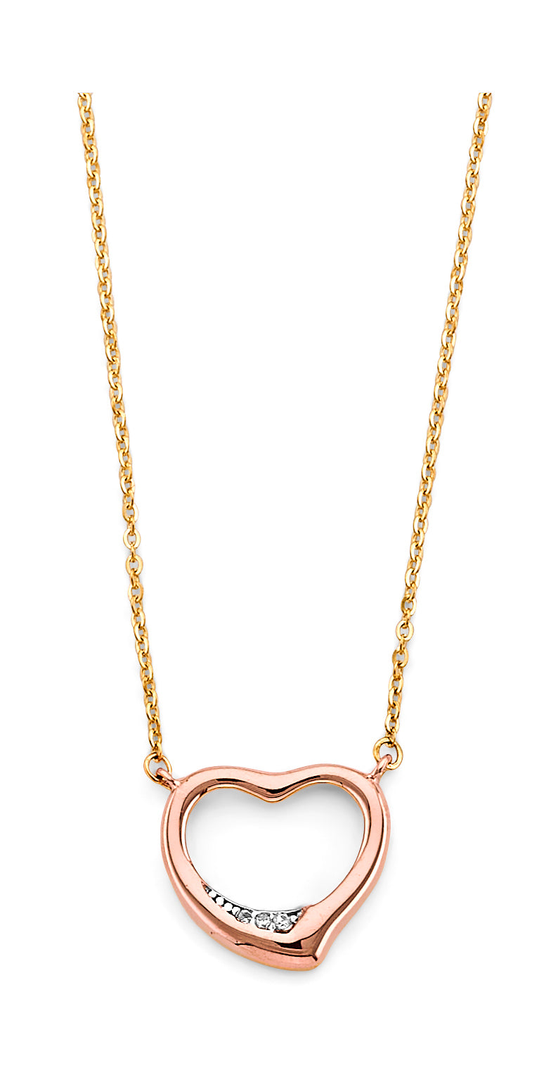 Wholesale 14K Tri Color Gold CZ Pink Heart Necklace Weight-1.84grams