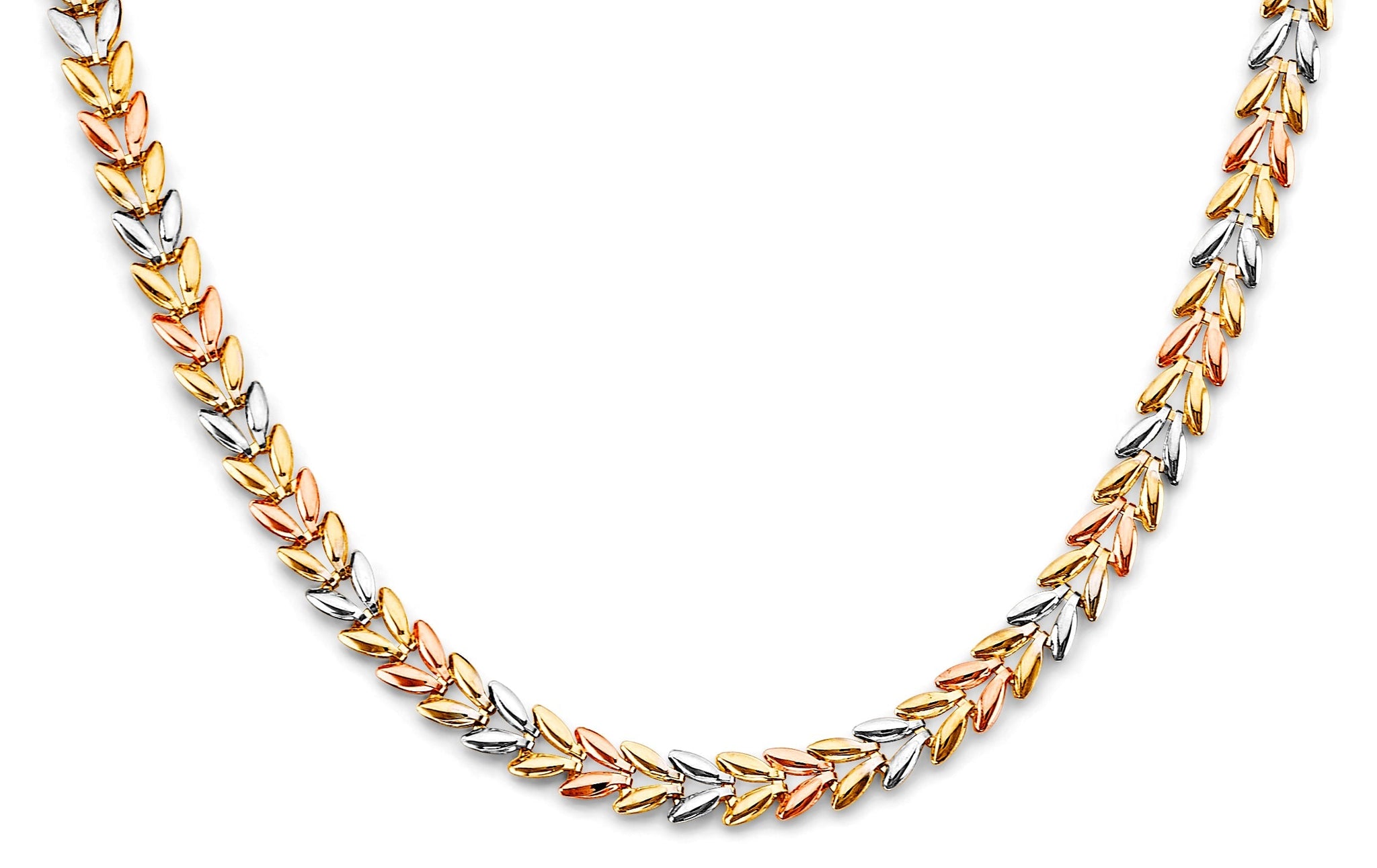 Wholesale 14K Tri Color Gold Double Face Stampato Necklace Weight-7.55grams