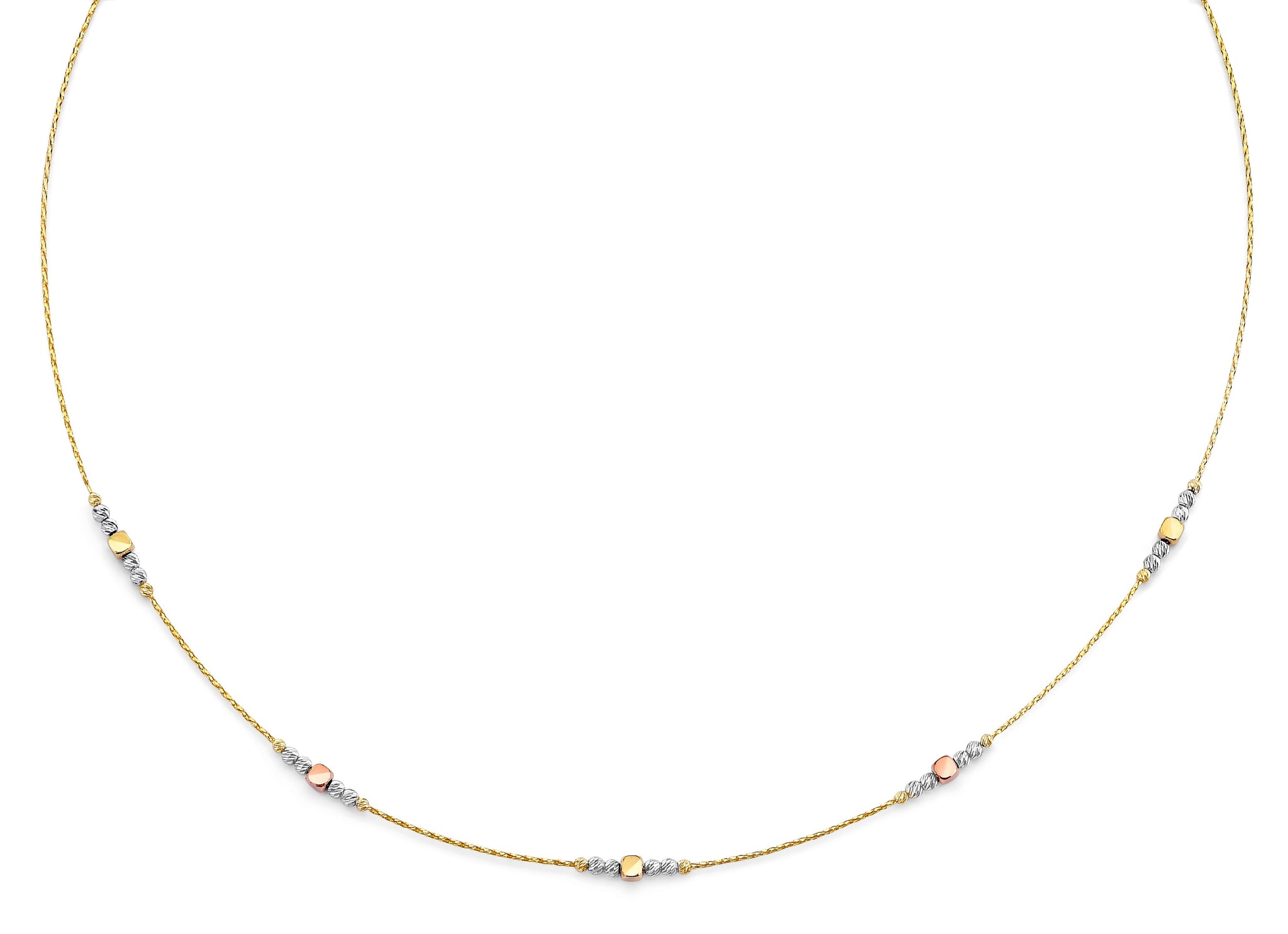 Wholesale 14K Tri Color Gold String Necklace With Square And Round Ball Weight-2.84grams