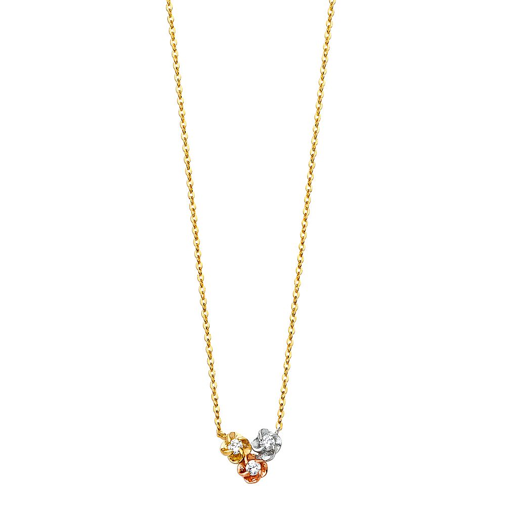 Wholesale 14K Tricolor CZ Triple Necklace Weight-1.44grams, Length-17+1inches