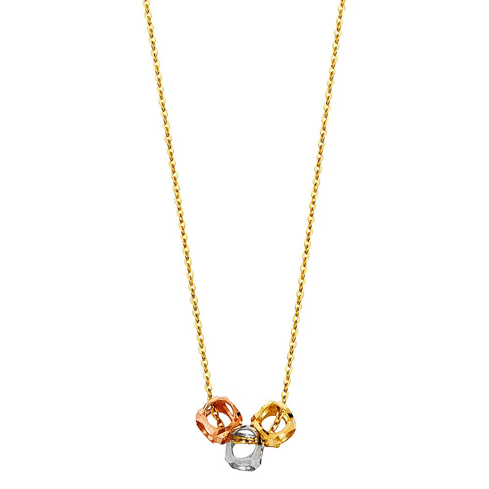 Wholesale 14K Tricolor Perforated Ball Necklace Weight-1.69grams, Length-17+1inches , Height-12mm, Pendant Width-6mm, Chain Width-0.5mm