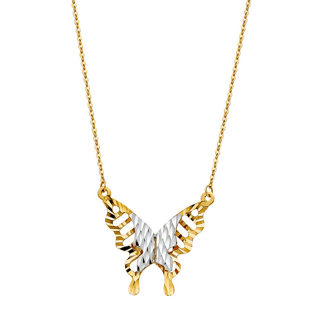 Wholesale 14K Two Tone Butterfly Necklace Weight-1.58grams, Height-18mm, Pendant Width-20mm, Chain Width-1mm, Length-17+1inches