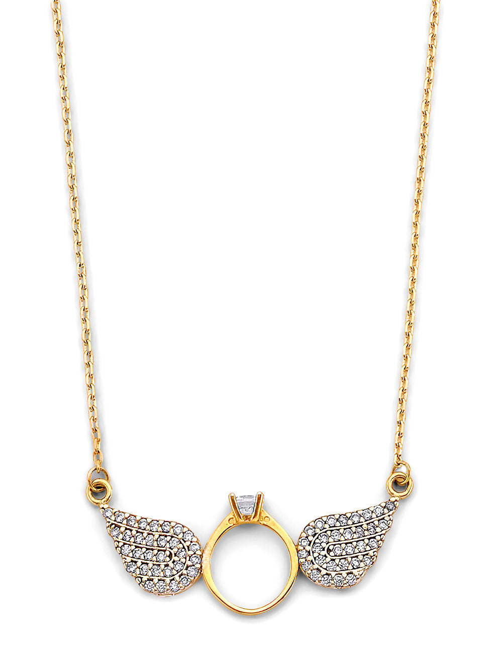 14K Two Tone Gold Double Angel CZ Wing Necklace