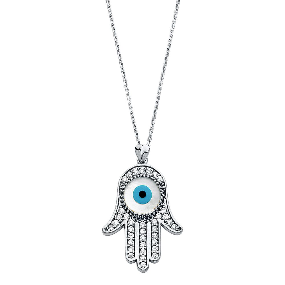 Wholesale 14K White CZ Evil Eye Necklace Weight-2.08grams, Height-22mm, Pendant Width-17mm, Chain Width-0.5mm, Length-17+1inches