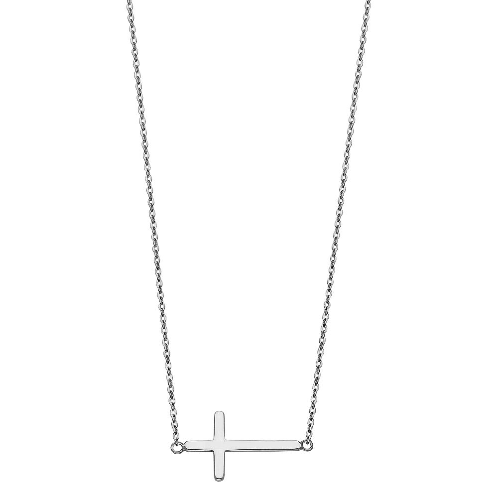 Wholesale 14K White Side Way Cross Necklace Weight-1.38grams, Length-17+1inches