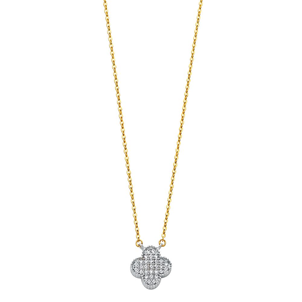 Wholesale 14K Yellow CZ Flower Necklace Weight-1.88grams, Height-10mm, Pendant Width-10mm, Chain Width-0.5mm, Length-17+1inches