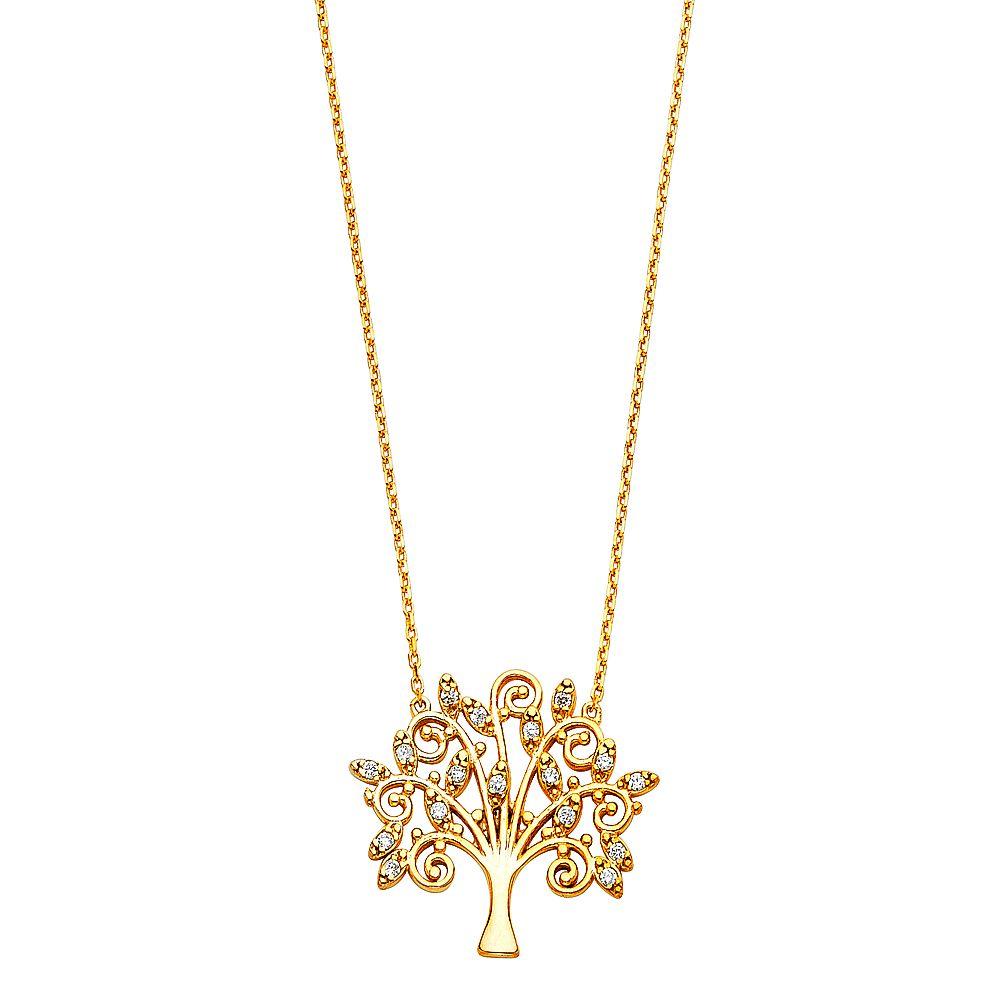 Wholesale 14K Yellow CZ Magic Tree Necklace Weight-2.88grams, Height-19mm, Pendant Width-20mm, Chain Width-1mm, Length-17+1inches