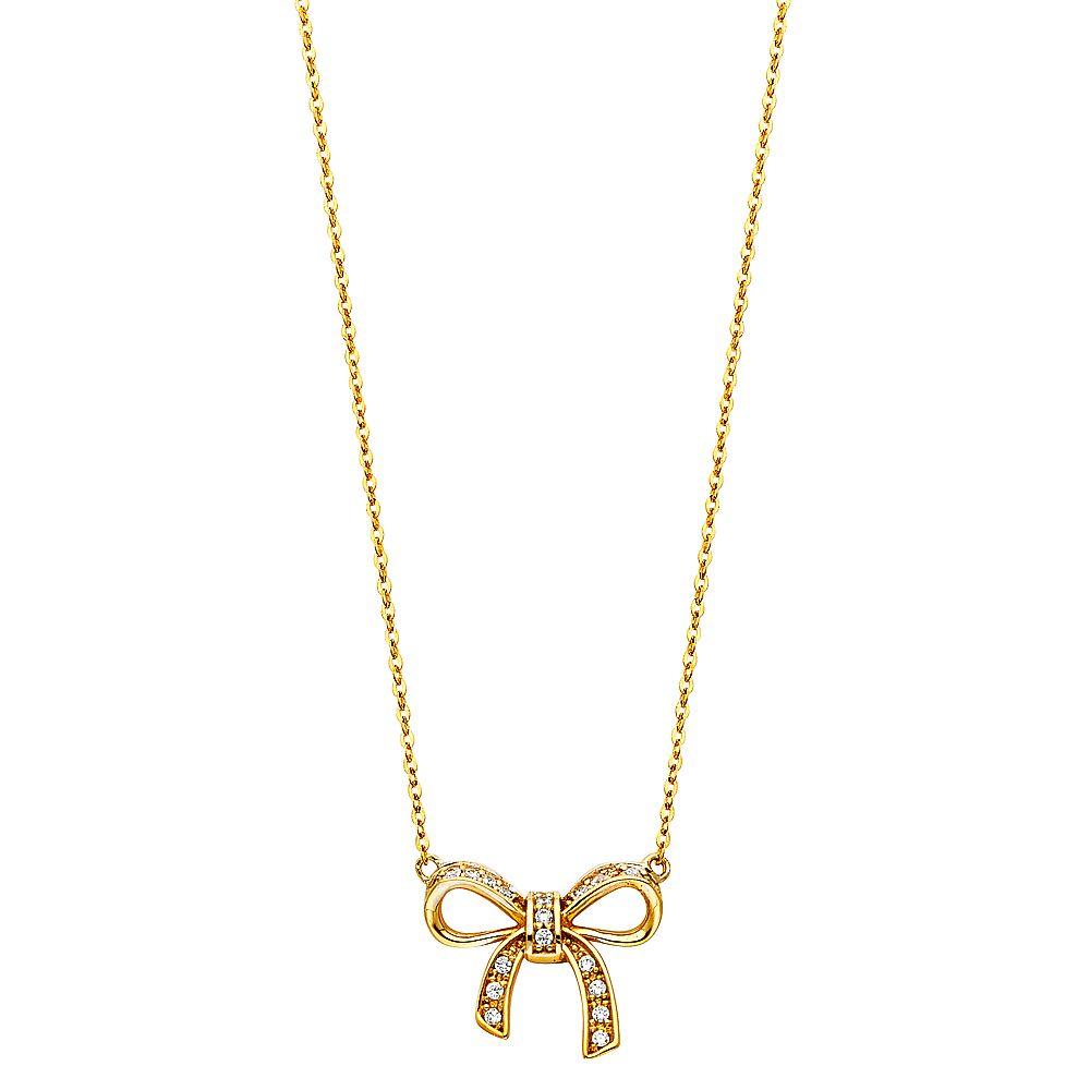 Wholesale 14K Yellow CZ Ribbon Necklace Weight-1.95grams, Charm Height-12mm, Charm Width-14mm, Chain Width-0.7mm, Length-17+1inches