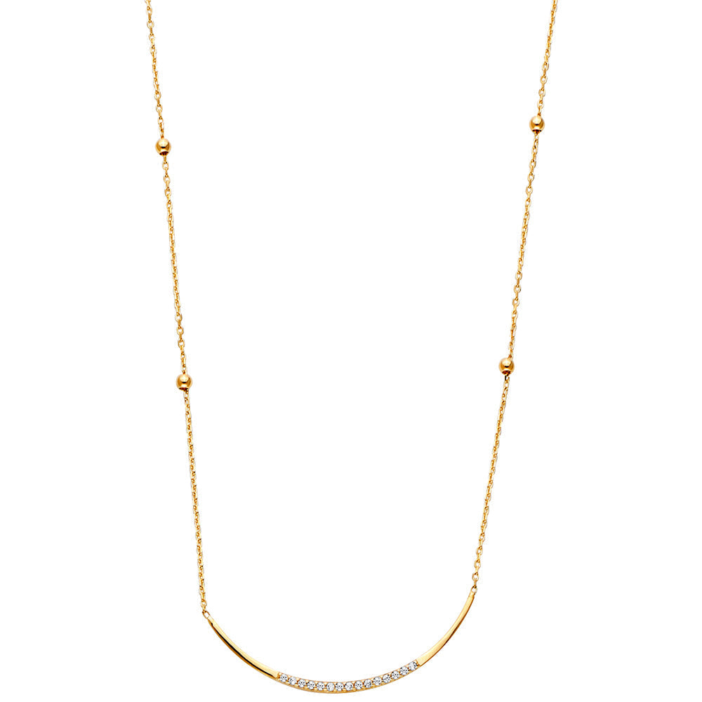 14K Yellow CZ U-Bar Light Chain with Ball Necklace