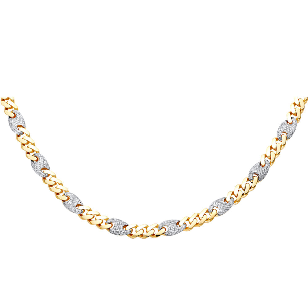 Wholesale 14K Yellow Gold 9.5mm Hollow Fancy Monaco CZ Necklace With CZ Lock Weight-36.23grams, Width-9.5mm