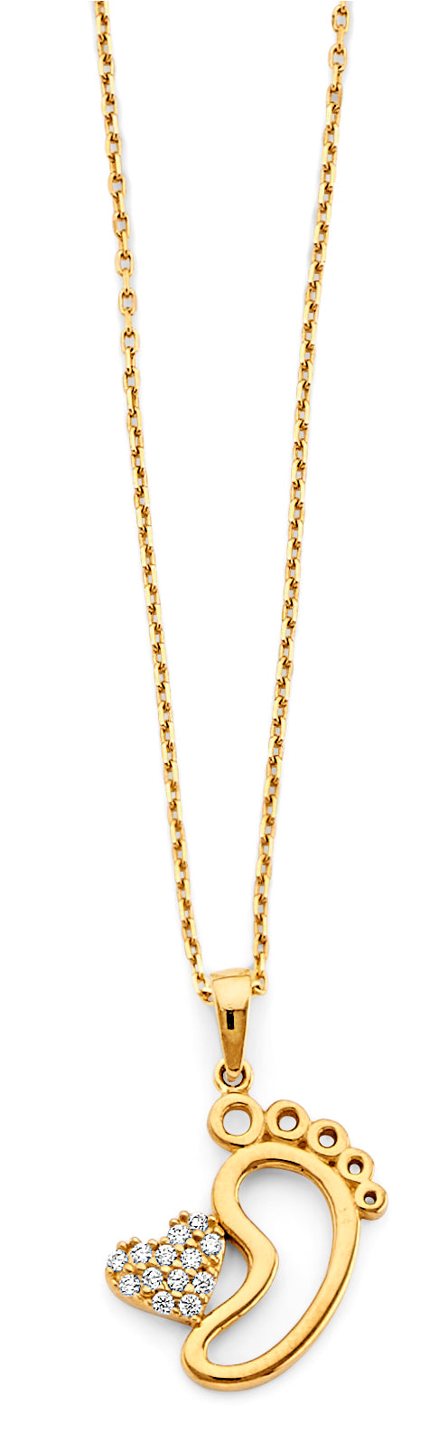 14K Yellow Gold CZ Heart And Baby Foot Necklace