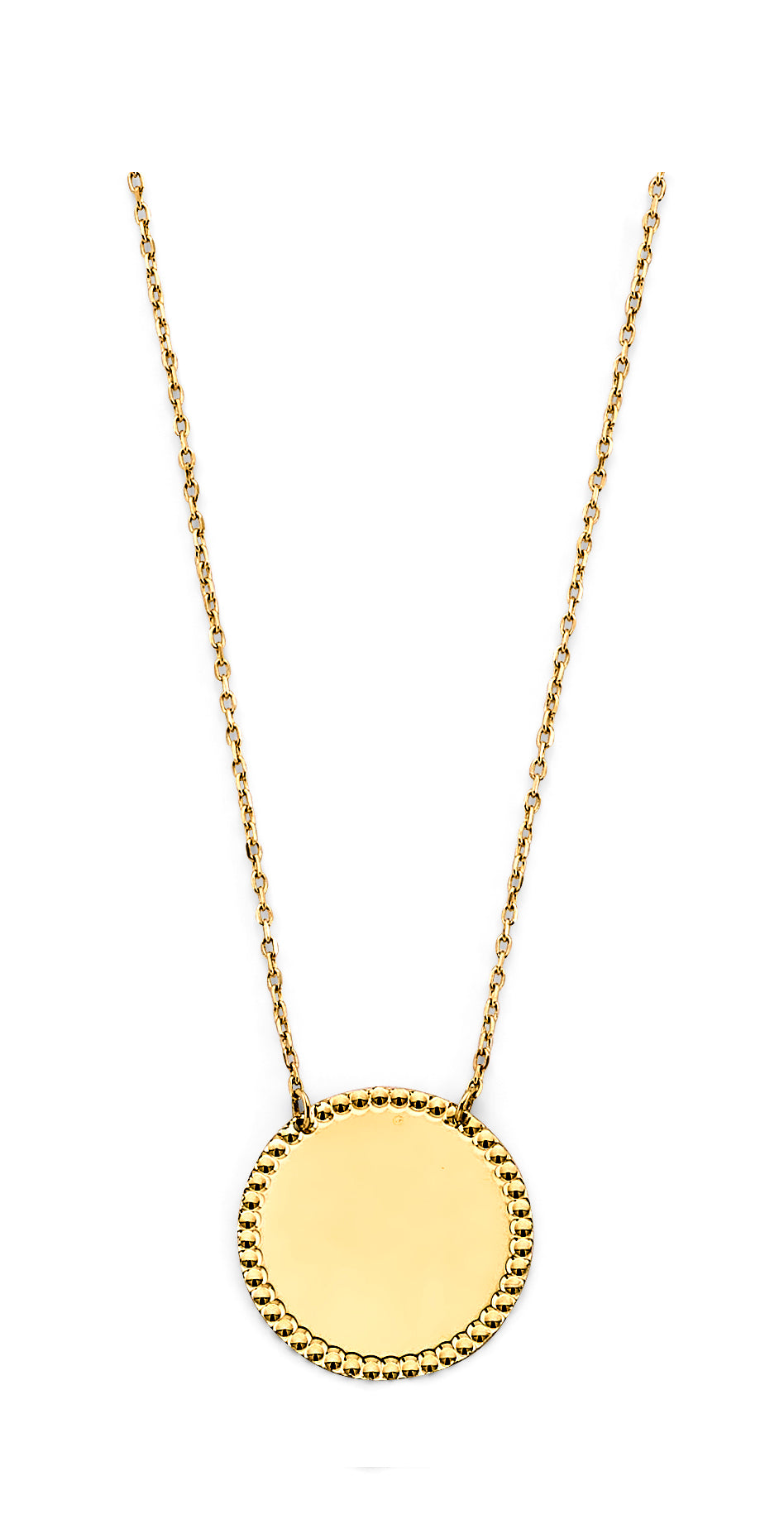 Wholesale 14K Yellow Gold DC Engravable Round Pendant Necklace Weight-2.44grams