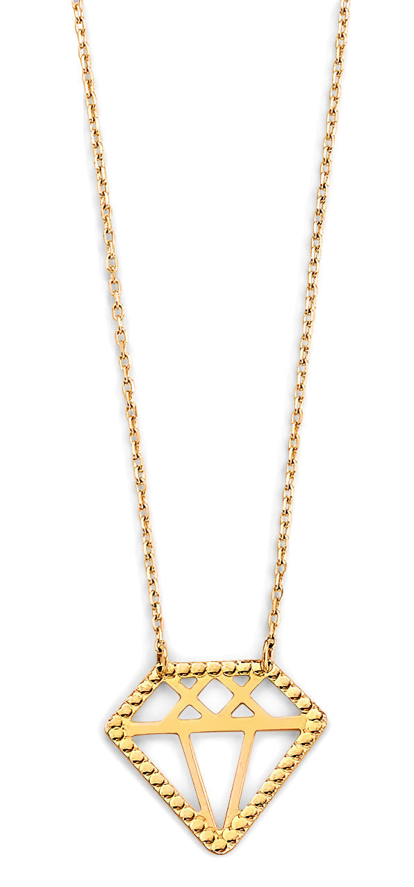 14K Yellow Gold Diamond Shape Pendant Necklace
