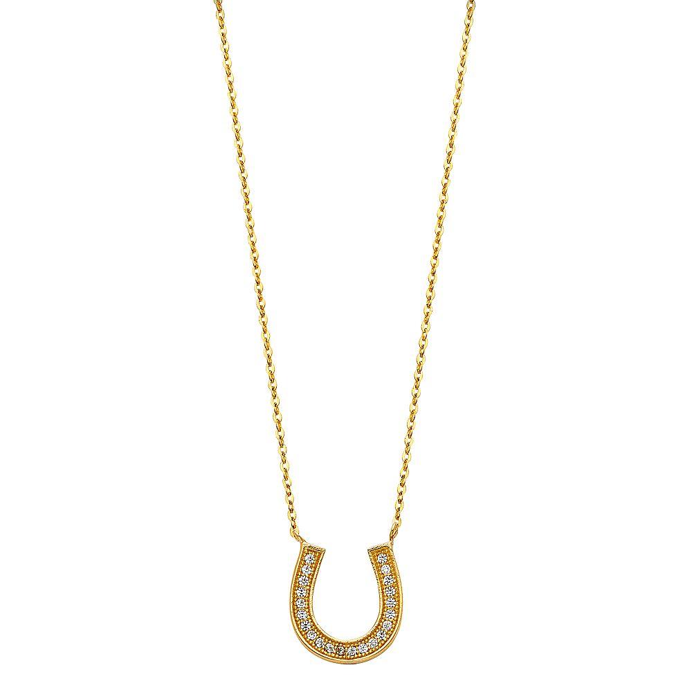 14K Yellow Pave CZ Lucky Horseshoe Necklace