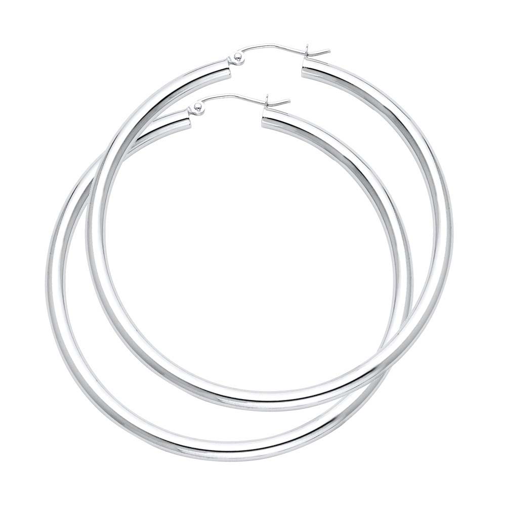 Wholesale 14K White Gold Large High And Satin Latch And Hinge Notch Post Backing Thick Plain Hoop Earrings Weight-4.07gram, Width-3mm, Diameter-55mm