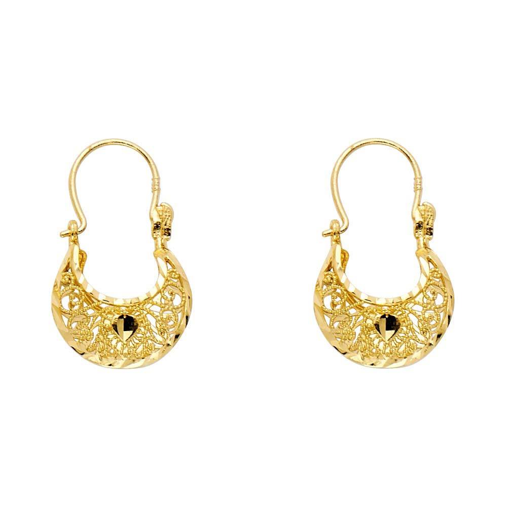 Wholesale 14K Yellow Gold Fancy Crescent Faceted And Filigree Hoop Earrings Weight-1.87gram, Height-21mm, Width-12mm