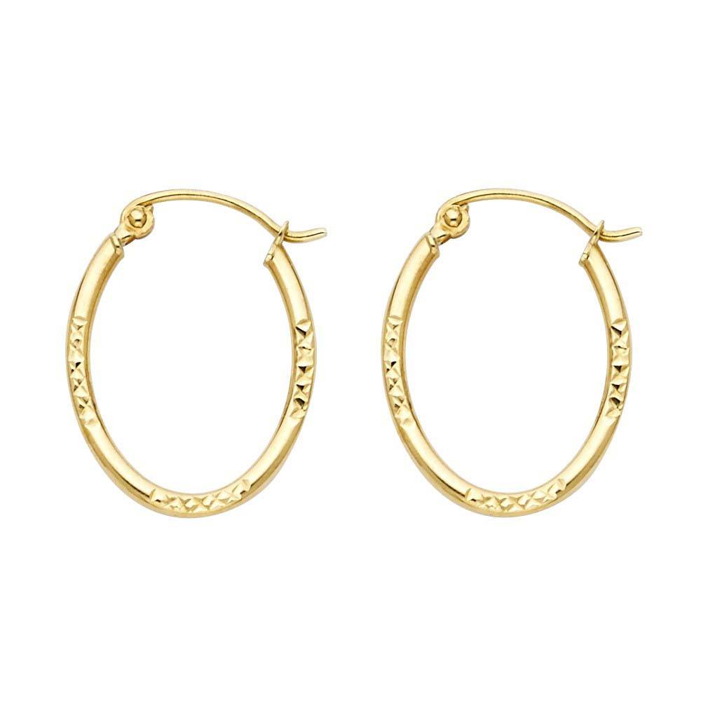 Wholesale 14K Yellow Gold Small Oval Crisscross Diamond Cut Hoop Earrings Weight-0.72gram, Height-20mm, Width-15mm