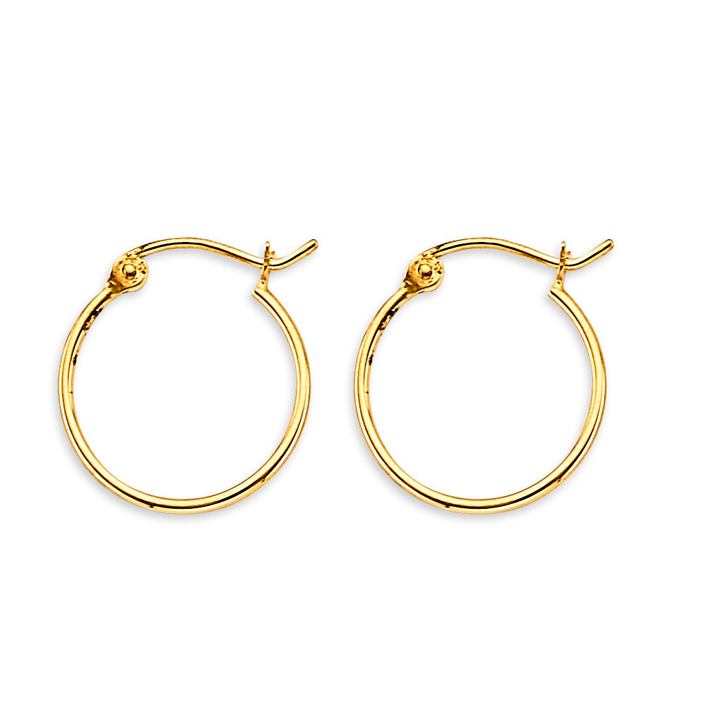 Wholesale 14K Yellow Gold 1mm Round Tube Hoop Earrings Weight-0.62grams, Height-15mm, Width-15mm