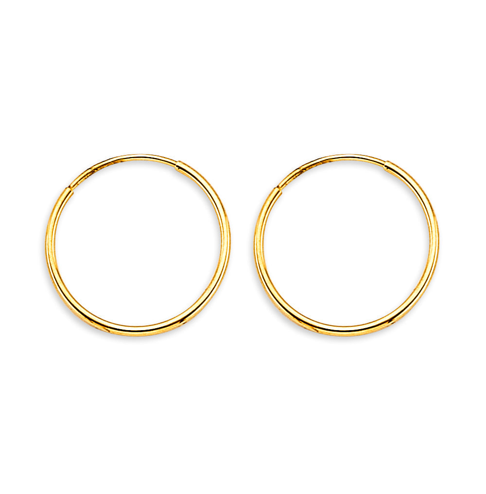 Wholesale 14K Yellow Gold 1mm Tube Endless Hoop Earrings Weight-0.39grams, Height-15mm, Width-15mm