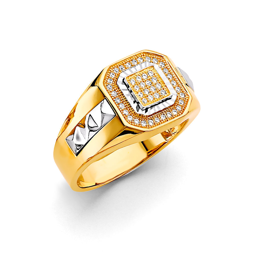 Wholesale 14K Two Tone Gold Square Men's CZ Ring Weight-7.34grams