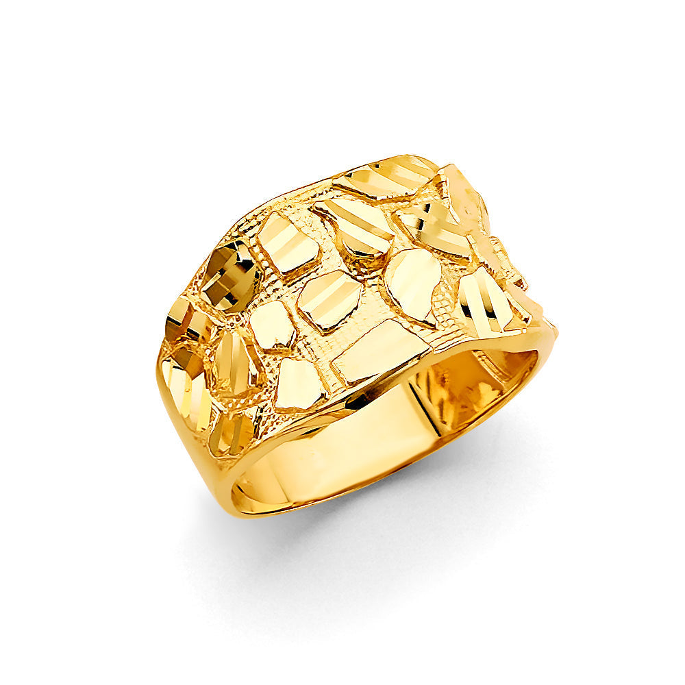 Wholesale 14K Yellow Gold Thin Men's Nugget Ring Weight-5.53grams