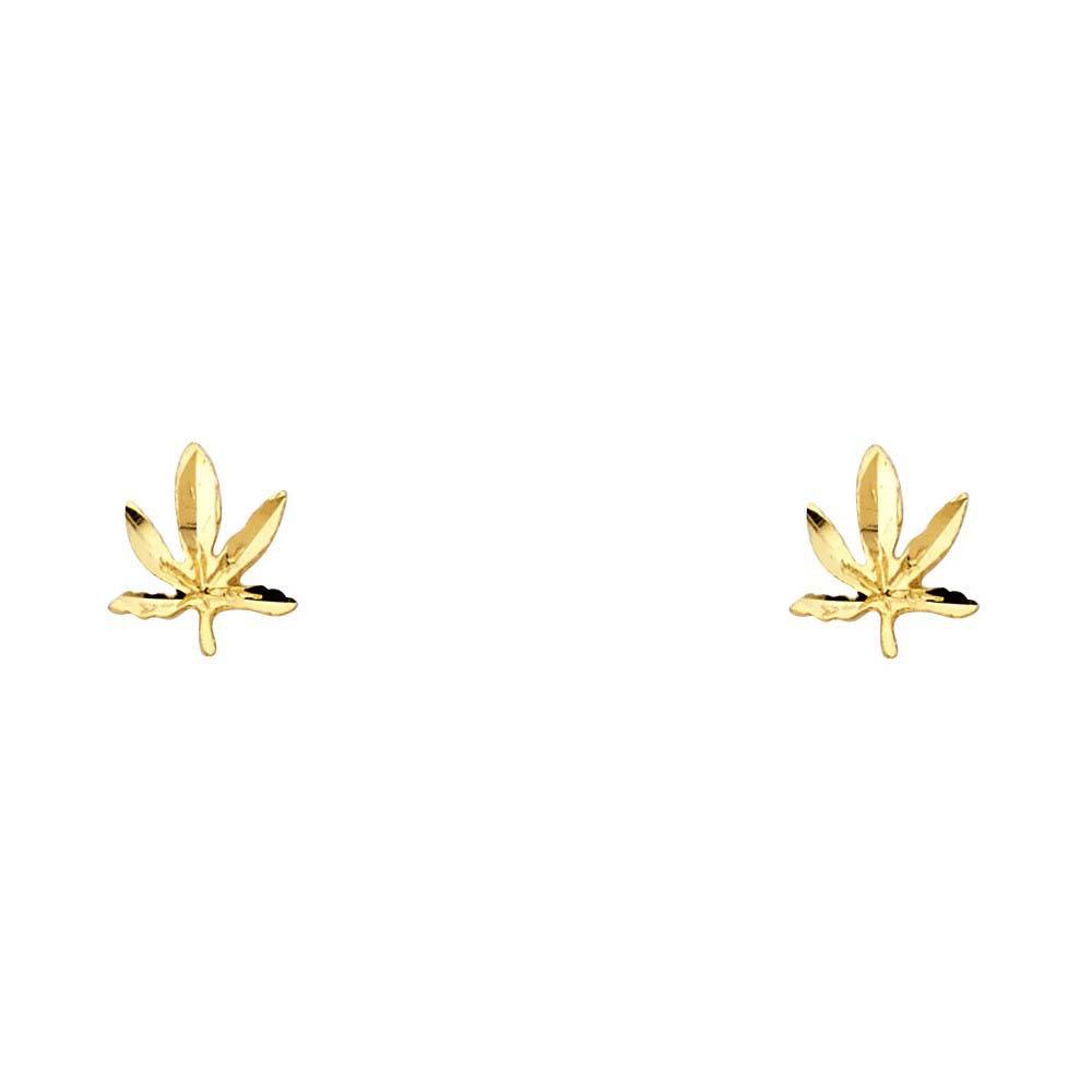 Wholesale 14K Yellow Gold Mariuana Post Earrings Weight-0.54gram, Height-9mm, Width-7mm