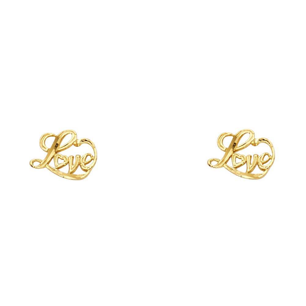 Wholesale 14K Yellow Gold Love Post Earrings Weight-0.57gram, Height-7mm, Width-8mm