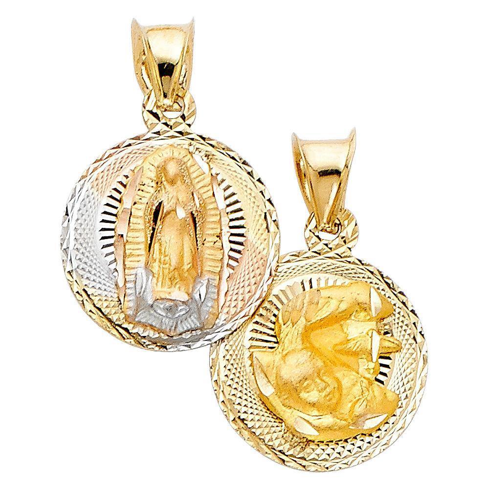 14K Tri Color 12mm DC Double Side Stamp Religious Pendant