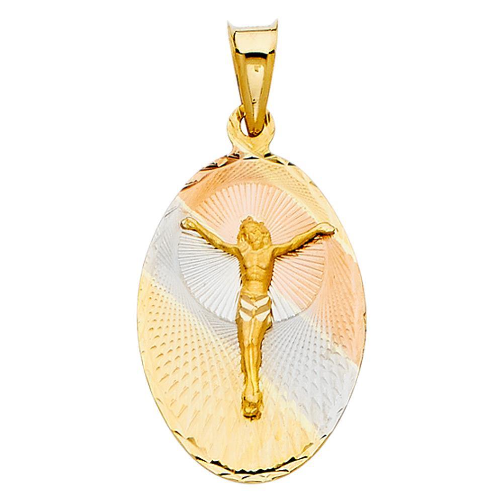 14K Tri Color 17mm DC Jesus Stamp Religious Pendant