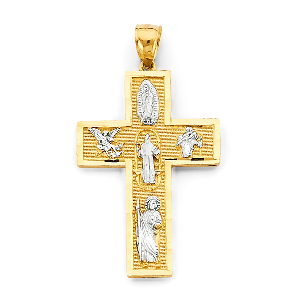 14K Two Tone Gold 25mm Religious Cross Pendant