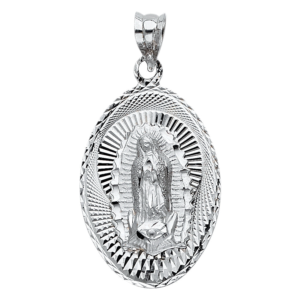 14K White Gold 17mm Religious Guadalupe Pendant