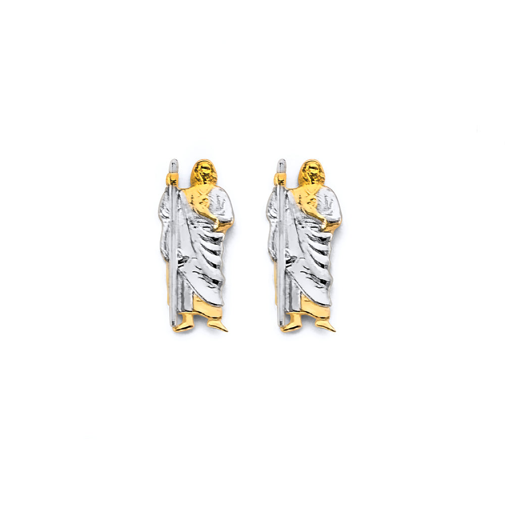 Wholesale 14K Two Tone Gold St. Jude Push Back Earrings Weight-1.23grams, Height-13mm, Width-5mm