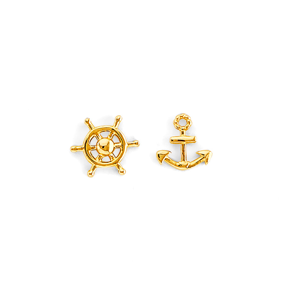 14K Yellow Gold Anchor And Wheel Push Back Earrings