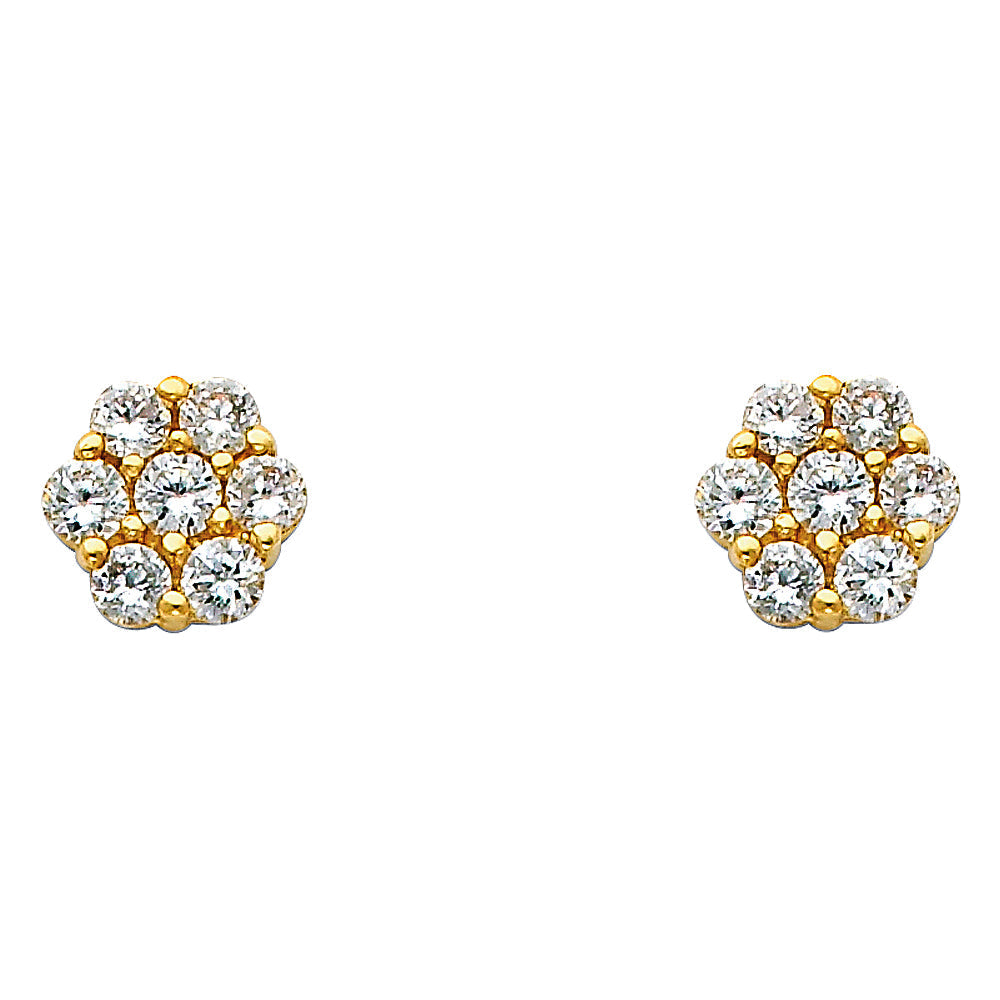 Wholesale 14K Yellow Gold Flower CZ Earrings Weight-1.7grams, Height-10mm, Width-10mm