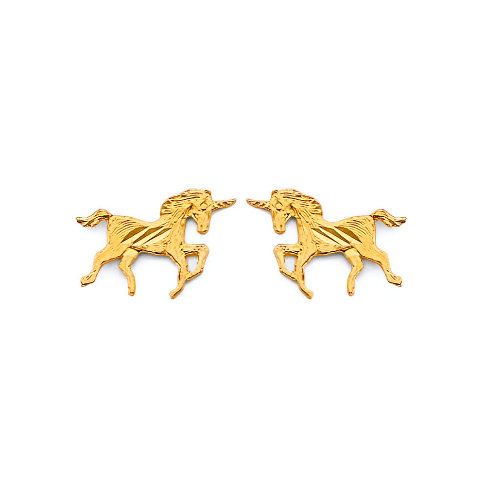 Wholesale 14K Yellow Gold Horse Push Back Earrings Weight-0.84grams, Height-10mm, Width-10mm