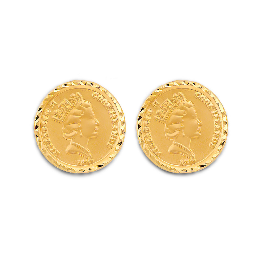 Wholesale 14K Yellow Gold Round Queen Elizabeth Earrings Or Set Weight-1.31grams, Height-15mm, Width-15mm