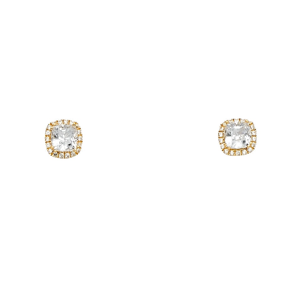 Wholesale 14K Yellow Gold Square CZ Earrings Or Set Weight-1.41grams, Height-7mm, Width-7mm