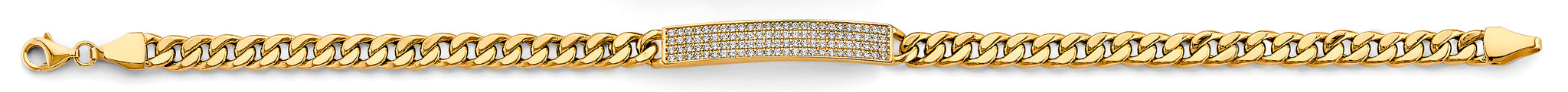 14K Two Tone Gold Cuban CZ ID Hollow Bracelet