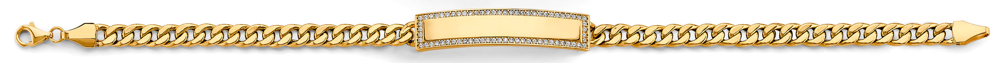 Wholesale 14K Two Tone Gold Hollow Cuban CZ ID Bracelet Weight-7.45grams, Length-8inches