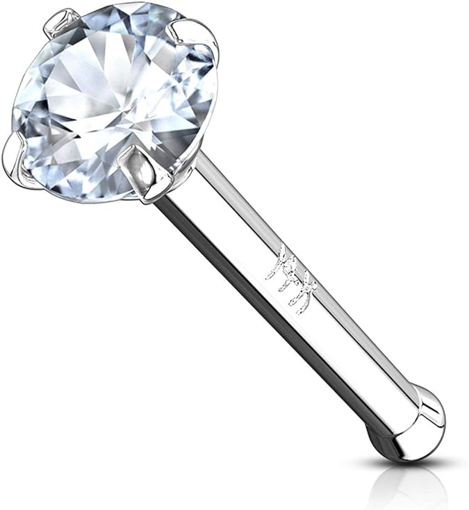 (Pack of 6 Pieces) 14k White Gold CZ Nose Stud with End Ball