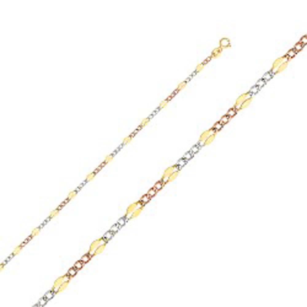 14K Gold with Tri Color 3.2mm Lobster Stamped Figaro 3? 3 Color Regular Chain With Spring Clasp Closure - silverdepot