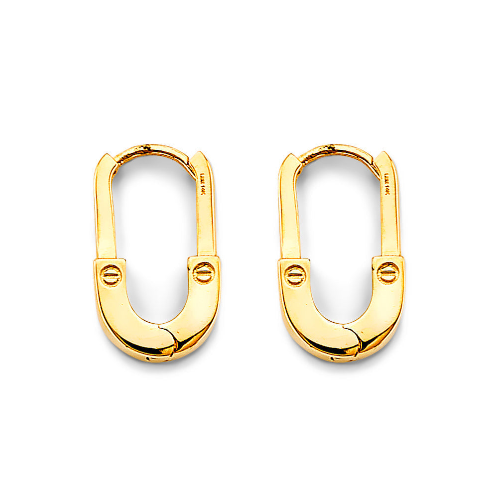 Wholesale 14K Yellow Gold Shiny Paperclip 10mm Huggies Earrings Weight-2.81grams, Height-17mm, Width-10mm
